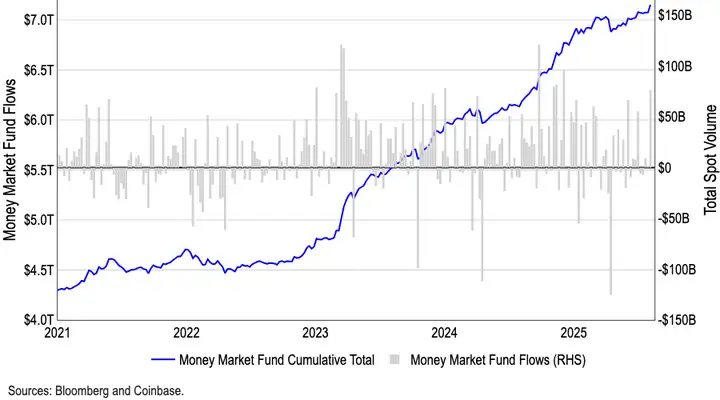 그러나 연준이 9월과 10월에 금리 인하를 실시할 예정이므로 머니마켓 펀드의 매력은 감소하기 시작할 것이며, 더 많은 자금이 암호화폐 및 기타 고위험 자산군으로 흘러갈 것입니다.