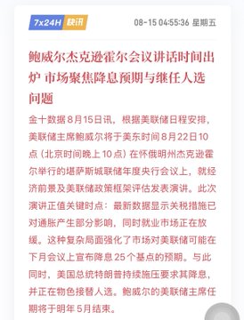 지난주 시장이 단기적으로 변동성을 보일 것이라는 대화에서 핵심은 이번 주 금요일의 글로벌 중앙은행 연례 회의였습니다. 많은 사람들이 이번 중앙은행 연례 회의의 주제인 "전환기의 노동 시장: 인구, 생산성 및 거시경제 정책"을 아직 명확히 이해하지 못할 수 있지만, 현재 미국 경제 상황과 매우 밀접하게 연관되어 있다고 할 수 있습니다. 이민, 본토 인구 및 인공지능이 가져오는 생산성에 대한 논쟁은 거의 모든 주제에서 언급될 것입니다. 관세, 적자 법안, 실업률의 무력화, 자본 지출, 최종 금리, 기술주에서 소비재 주식까지의 실적 보고서 등 모든 영역에서 이 핵심 문제를 피할 수 없습니다. 이는 현재 시장의 핵심 초점입니다: 중장기적으로 상승 동력은 명확합니다. 재정 확장, 산업 정책 주도, AI의 대규모 가속화, 암호화폐 핵심 자산의 대규모 구매 과정 등에서 비롯됩니다. 하지만 단기적으로 동력이 부족해지기 시작했습니다. 특히 지난주 목요일 데이터가 크게 예상을 초과했고, 지난주 금요일의 인플레이션 예상도 점차 상승했습니다. 이전에는 채무 압박으로 인해 완화될 것으로 확신했지만, 데이터와 인플레이션의 잠재적 상방 리스크로 인해 이러한 필연적 완화 예상이 타격을 받았고, 이는 현재 변동성 조정의 근본적인 논리입니다. 이는 이전 대규모 교체에 대한 트윗에서 언급된 것처럼 매수 자금의 유입 속도와 리듬에 영향을 미칠 것입니다. 이는 이전 재정 확장 2.0에서 언급된 것으로, 중장기 논리는 견고하지만 단기적인 소규모 리스크 충격의 원천입니다. 중앙은행 연례 회의로 돌아가서, 현재 파월의 태도는 비둘기파 또는 매파 모두 타당성이 있습니다: 비둘기파 예상은 노동 시장이 실제로 둔화되고 있으며, 인플레이션이 온화하게 상승하고 있고 대규모로 급등하지 않았으며, 채무 압박이 실제로 크다는 것입니다. 매파 예상은 관세가 상품 인플레이션으로 반영되지 않았지만, 서비스 산업의 점착성이 다시 높아졌다는 것이며, 여기에는 연방준비제도의 독립성에 대한 투쟁도 암시되어 있습니다. 핵심은 파월이 고용과 인플레이션의 이중 사명 사이에서 어느 쪽에 더 치우치는지입니다. 개인적으로 그의 가장 좋은 태도는 중립적이며, 9월 금리 인하를 명확히 표명하지 않고 8월 고용 및 인플레이션 데이터를 기다리겠다는 입장입니다. 이는 9월 금리 인하를 충분히 반영한 시장에 대체로 중립적입니다. 파월은 7월 금융통화위원회 회의에서 새로운 금리 프레임워크를 언급했습니다: 현재 금리 수준은 최소한 "온화한 긴축"이며, 인플레이션 상방 리스크가 지배적이라면 이러한 정책 위치는 합리적입니다. 그러나 고용 하방 리스크와 인플레이션 상방 리스크가 균형을 이룬다면, 정책 금리를 인하하고 중립에 가깝게 조정해야 합니다. 따라서 파월의 중립적 입장은 시장에 단기적인 우려 정서를 완화시키지만, 8월 데이터를 통해 7월 와 의 서비스 산업 강세가 일시적인지 추세적인지 확인해야 합니다.