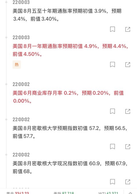 晚上公布8月通胀预期都是起来,消费者信心指数略低于预期,又回到几个月前软数据差的状态,这个会影响到市场情绪,如昨天说短期还是会震荡。后面的关键时点应该就是下周全球央行年会鲍威尔的讲话,他怎么看待7月份服务超预期,商品通胀不及预期的状态,以及能否释放未来的利率走势的预期。 x.com/qinbafrank/sta…