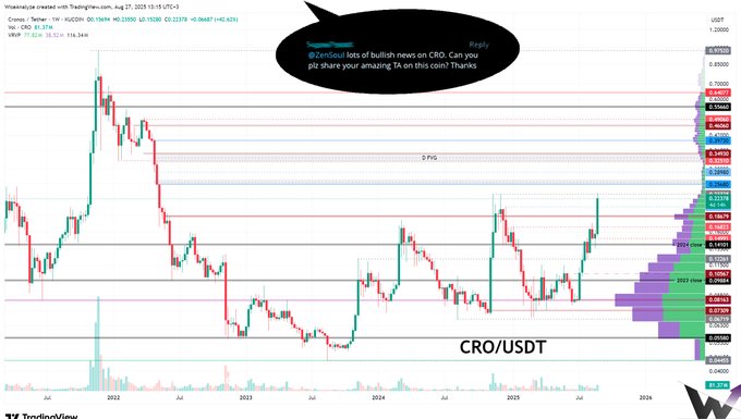 $CRO 이번 주에 상당한 움직임을 보였습니다. 11월 스윙 고점을 돌파하여 HH(하프 하이)를 기록했습니다. 순전히 지난 몇 년간의 실적을 바탕으로 볼 때, 이 코인은 조정 국면에 진입하기 전에 상승할 가능성이 있습니다. 목표주가를 보유하고 있다면 0.257에서 0.290 사이의 구간이 목표주가가 될 수 있다고 생각합니다. 새로운 진입에 대해서는 적어도 0.17까지 조정이 있을 때까지 기다리는 것이 좋습니다.