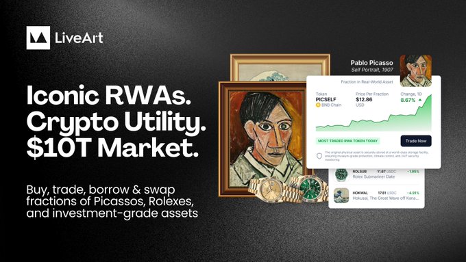 LiveArt는 피카소, 롤렉스, 투자 등급 자산의 일부를 매수, 거래, 대여 및 교환할 수 있는 최고의 RWAfi 프로토콜입니다.