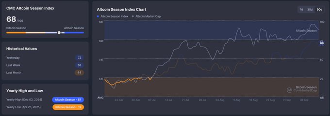 🐂 토큰 생성 이벤트(TGE) 에 대한 여러 가지 강세 신호가 나타나고 있습니다! 1. 미국 연준이 9월 17일에 금리를 인하할 가능성이 99% 예측되었습니다! 마지막 금리 인하는 작년 12월이었습니다. 모든 시장에 매우 강세 신호입니다. 2. 암호화폐 시가총액이 4조 달러를 넘어 신고가 기록했습니다! 더 많은 자금이 유입될 예정입니다.