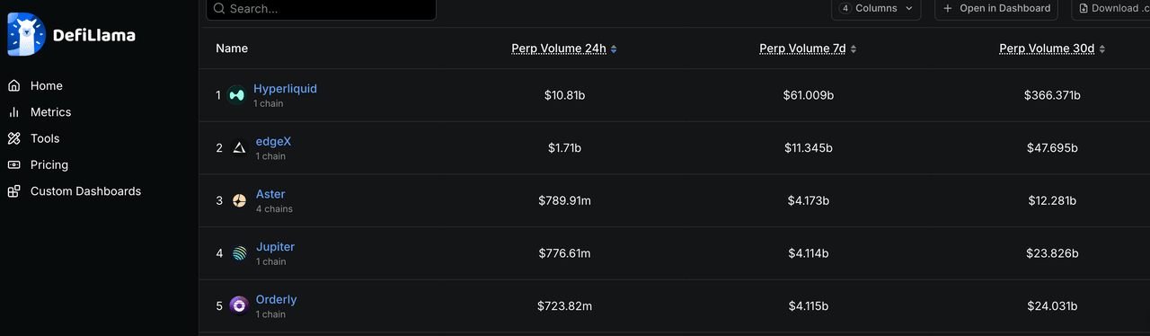 DefiLlama 데이터에 따르면, Aster의 지난 30일 거래량은 약 167억 달러였으며, 더 중요한 점은 거래량이 성장 추세에 있다는 것입니다.