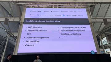 The legends from @EthereumPhone Markus (ethOS) and @0x_freedom Nicola presenting on the often overlooked mobile hardware blackbox problem. As someone who highly values privacy this was an awesome talk.