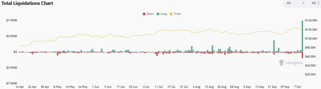 암호화폐 시장은 오늘인 10월 11일 역사상 가장 큰 규모의 강제 청산을 경험했습니다. CoinGlass의 시장 데이터에 따르면, 북미 장 마감 후 암호화폐 시장에서 95억 달러 이상이 청산되었습니다.
