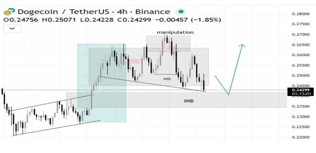 암호화폐 분석가 '블록체인 볼러' 는 목요일 X 소셜 미디어를 통해 도지코인(Dogecoin) "깔끔한 조작과 구조 붕괴 이후 IMB(인도네시아 중앙은행) 구역에 진입했다"고 밝혔으며 , 이는 조정 국면 의 종료를 시사했습니다 . 당시 해당 분석가의 4시간 차트는 도지코인(Doge) $0.235~$0.245 구간을 맴돌고 있음을 보여주었습니다. 이 구간은 역사적으로 가격 비효율성이 종종 상승 전에 채워지는 유동성 구역 역할을 합니다.