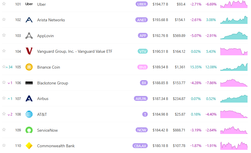 BNB가 글로벌 상위 100대 자산에 진입할까요?