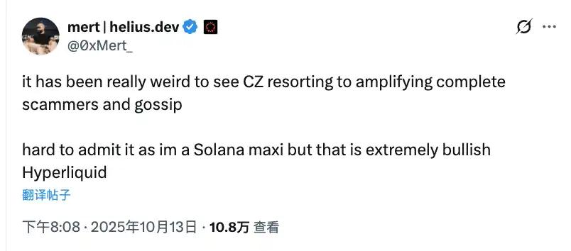 이 논쟁은 곧 논쟁으로 번졌습니다. DeFi 베테랑 앙드레 크론예는 바이낸스를 지지했고, 솔라나 커뮤니티 핵심 멤버이자 헬리우스 랩스 CEO인 메르트는 하이퍼리퀴드를 지지했습니다. 이렇게 업계는 두 진영으로 나뉘었습니다.