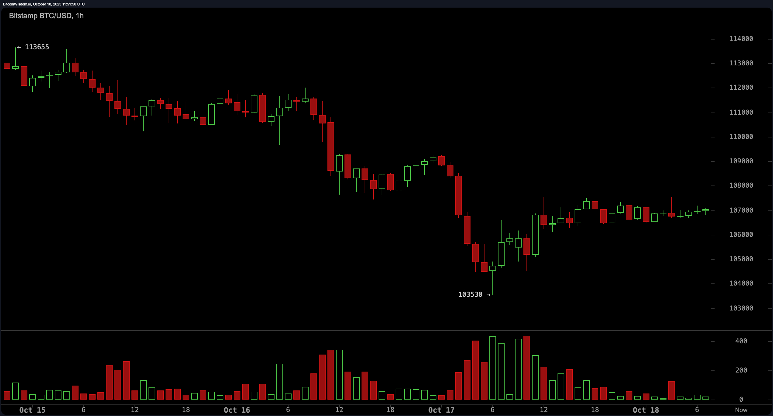 1시간 비트코인 차트는 전형적인 계단식 하락세를 보이며, 103,530달러에서 반등한 후 106,000달러에서 107,000달러 사이에서 횡보하는 모습을 보여줍니다. 이러한 횡보 국면은 거래량 감소로 특징지어지며, 이는 종종 매집으로 해석됩니다. 즉각적인 저항선은 108,000달러에서 108,500달러 사이에 위치하며, 이는 단기적인 천장 역할을 합니다. 이 가격대를 돌파하고 거래량이 증가하면 110,000달러에서 112,000달러까지 단기적인 상승세를 유발할 수 있습니다. 그러나 105,500달러 아래에서 다시 약세가 나타나면서, 특히 이 가격대를 돌파하는 과정에서 거래량이 증가한다면 103,500달러를 다시 시험대에 올릴 가능성이 높습니다.