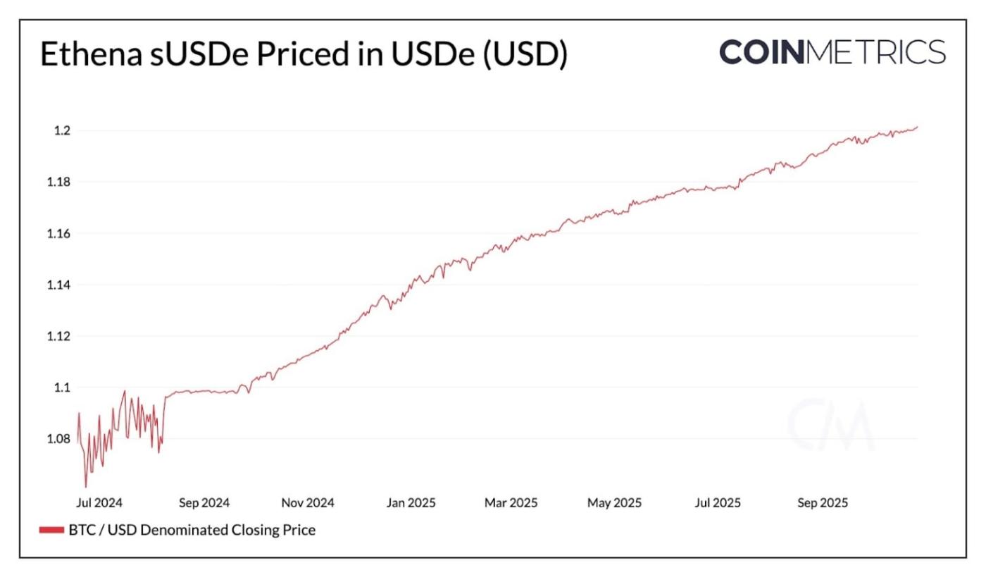 스테이킹 USDe(sUSDe)는 영구 자금 조달 금리, 이더리움(ETH) 스테이킹 보상, 유동적 스테이블코인으로부터 수익을 발생시키며, 수익률은 거래소 자금 조달 동향과 온체인 수익률에 따라 결정됩니다.
