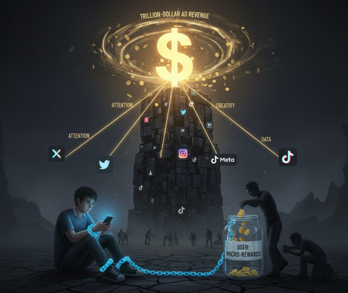 우리는 전례 없는 디지털 풍요의 시대에 살고 있습니다. 정보는 전례 없는 속도로 생성, 확산, 소비되고 있습니다. 그러나 이러한 번영의 허울 아래 심각한 경제적 역설이 점점 더 분명해지고 있습니다. 디지털 문명의 핵심 참여자이자 가치 창출자인 우리 대다수는 이 수조 달러 규모의 경제에서 체계적으로 소외되고 있습니다.