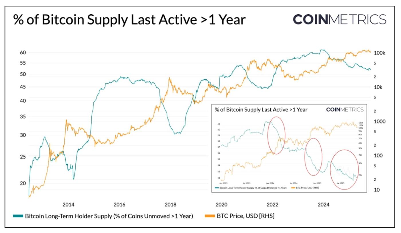 최근 몇 주 동안 유입은 줄어들었지만, 더 광범위한 추세는 공급이 보다 안정적이고 장기적 소유권 채널로 점진적으로 이동하고 있음을 반영하는데, 이는 이번 주기의 시장 구조에서 독특한 특징입니다.