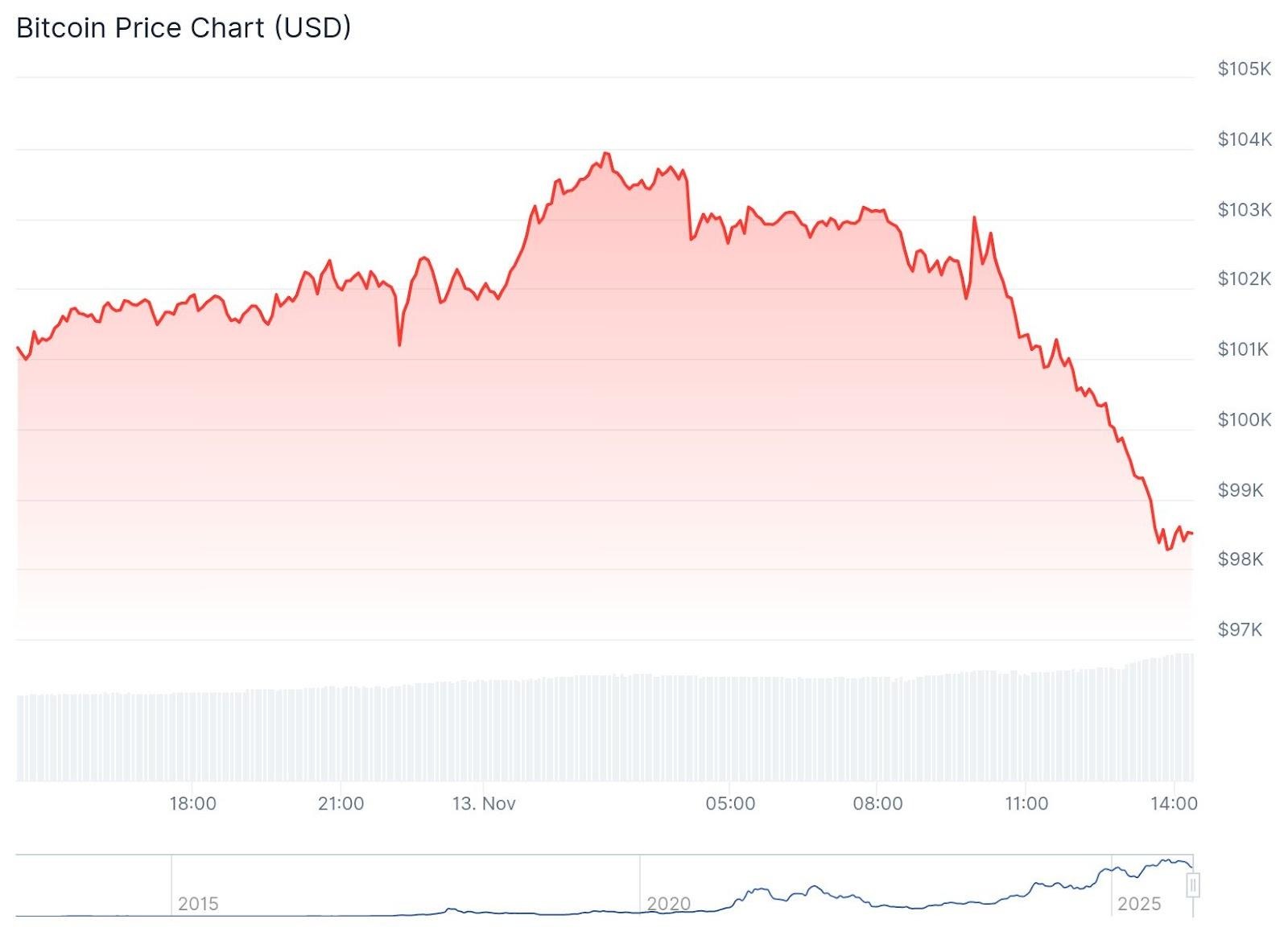 11월 13일 목요일, 미국 정부 폐쇄 종료와 지속적인 인플레이션 압박에 투자자들이 반응하면서 암호화폐 시장이 하락했습니다.