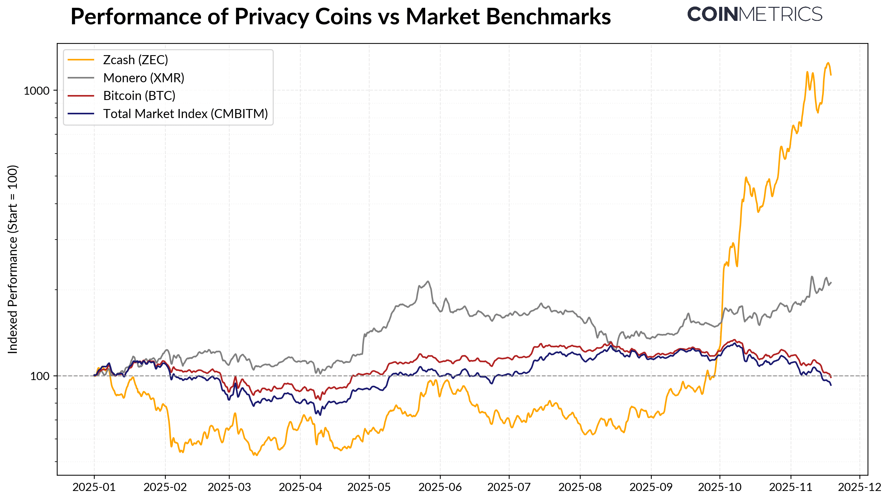 지캐시(Zcash) 전체 시장보다 훨씬 높은 성과를 보였으며, 온체인 개인정보 보호에 대한 관심이 다시 높아지면서 지캐시(ZEC) 10월 이후 거의 10배나 상승했습니다.