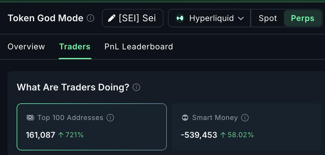 퍼프 트레이더들도 더욱 활발하게 움직이고 있습니다. 상위 100개 주소의 롱 포지션이 721% 증가하며, 새로운 관심을 시사했습니다.