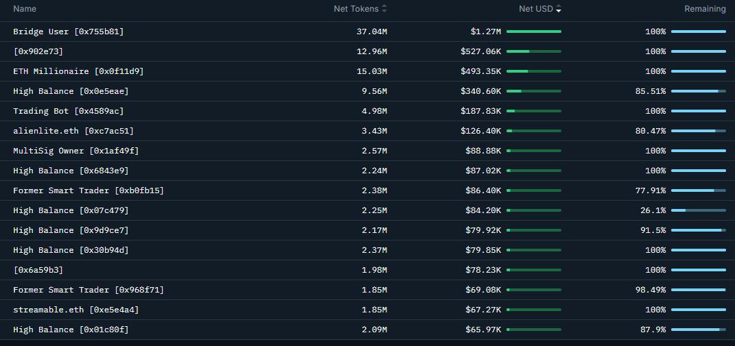 내부자 거래가 제한되어 있기 때문에 초기 판매자는 대부분 에어드랍 받은 사람들이었습니다. 이러한 역학 관계는 2025년 에어드랍의 많은 부분을 망가뜨린 대규모 연쇄 반응을 막는 데 도움이 되었습니다.