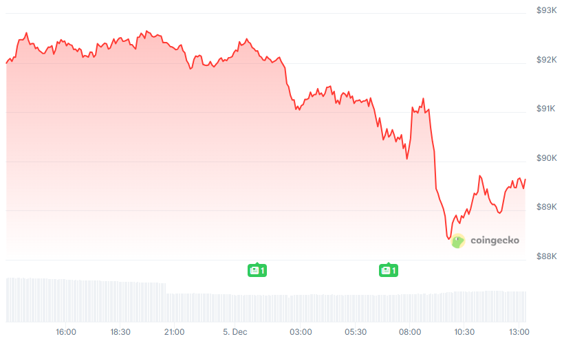 12월 5일 금요일, 미국 핵심 개인 소비 지출(PCE) 데이터가 예상치를 밑돌자 투자자들이 신중한 태도를 취하면서 암호화폐 시장이 하락했습니다.