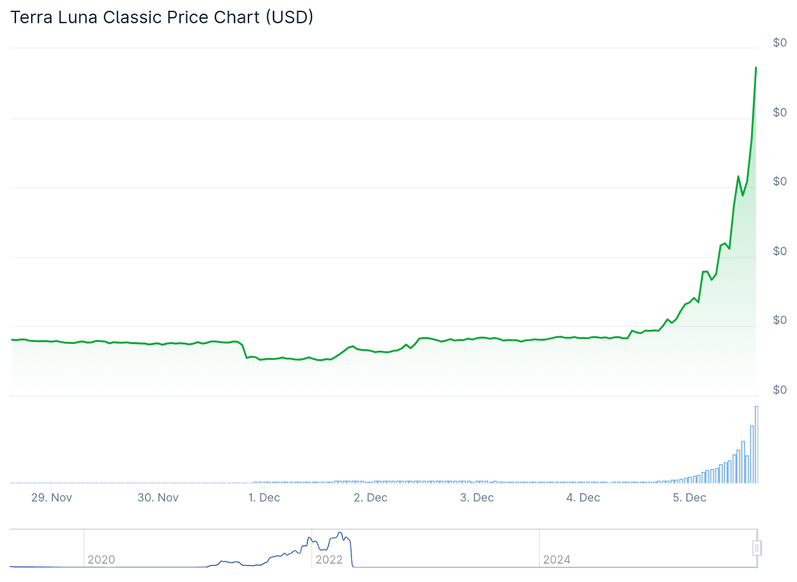 루나와 UST가 붕괴된 지 3년이 지났지만, 테라(Terra) 창립자 도권은 여전히 법적 싸움을 벌이고 있으며, 오늘 미국 법무부(DOJ)가 그에게 12년 징역형을 구한다는 소식이 전해지자 루나 클래식(루나(LUNA) ) 주가는 130% 상승했습니다.