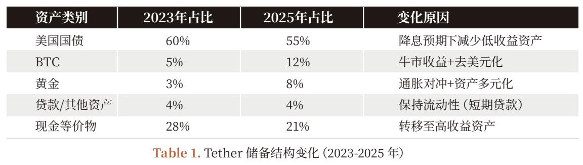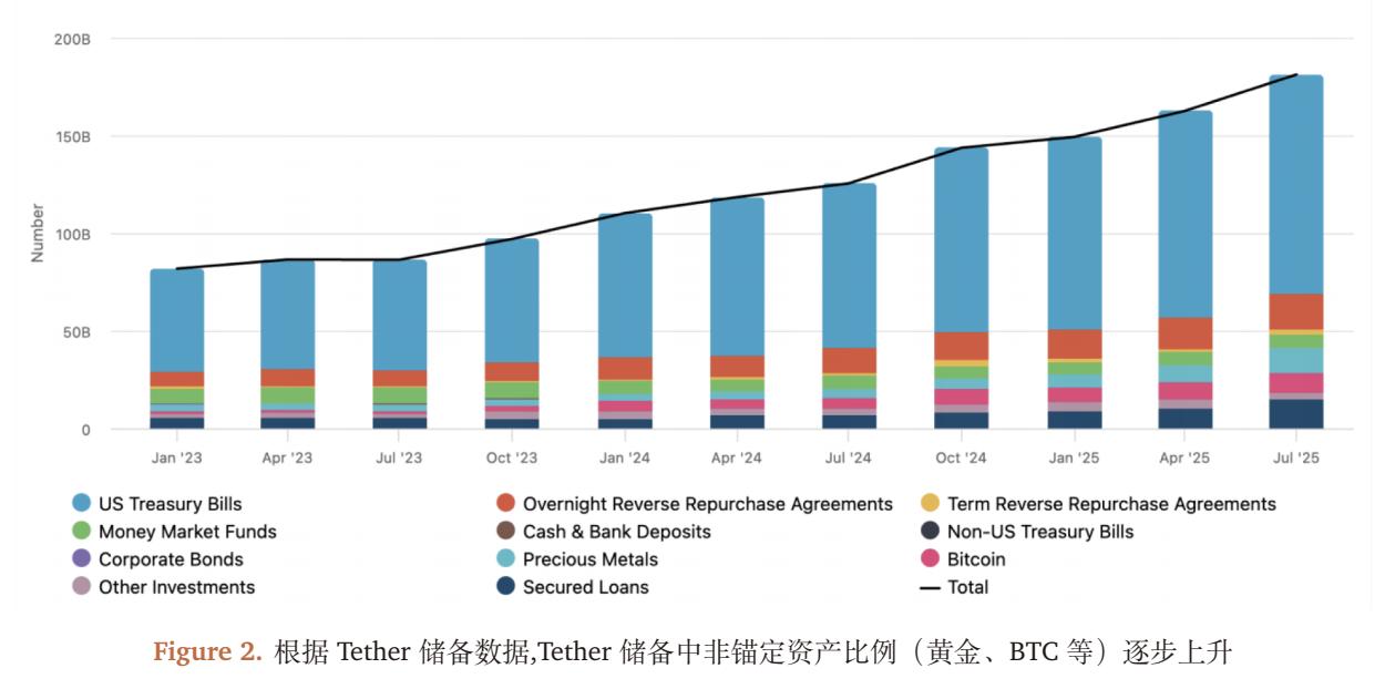 2. 테더의 준비금 구조 변화: "스테이블코인"에서 "그림자 중앙은행"으로의 전략적 논리 2.1 준비금 구조의 시계열 변화 (2023-2025)
