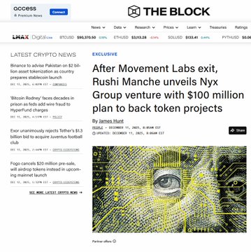 '빌더'에서 '빌드'로 $MOVE 그리고 NYX 그룹의 새로운 도약 루시 만체(@rushimanche)는 재능 있는 인물이지만, 다른 많은 사람들처럼 프로젝트를 구축했다가 포기하고, 그 자금을 암호화폐 펀드에 투자하는 과정을 거쳤습니다. 구체적인 내용은 다음과 같습니다. 1. 뛰어난 초기 경력 - 루시 만체의 가족은 인도에서 자선 활동을 하고 있으며, 그는 우수한 학업 성적과 거의 만점에 가까운 SAT 점수를 보유하고 있었지만, 암호화폐에 전념하기 위해 일찍 학교를 중퇴했습니다. 2. Aptos 2022의 진정한 빌더 - 루시 만체는 Aptos 시스템에서 스마트 계약 개발자로 활동했고, Kairos Exchange와 Mira Finance를 위한 Move를 작성했으며, 분산 시스템과 모듈형 블록체인에 깊은 관심을 가지고 있었습니다. => 당시 그는 헌신적인 빌더였습니다. 3. Movement Labs 2022–2024 - 그는 Cooper Scanlon과 함께 Movement Labs를 공동 설립하고 4천만 달러 이상(시드 투자 이전 + 시리즈 A)을 유치했으며, MOVE를 이더리움 기반 Move 생태계로 자리매김했습니다. - 개발 과정에서 Move는 Aptos의 언어를 표절했다는 비판을 받았습니다. 또한, 프로젝트는 개발 방향에 대해 상당히 모호했으며, 때로는 L2를 구축했다가 L1을 포함시키는 등 메인넷 출시가 지연되는 결과를 초래했습니다. 4. Movement 관련 스캔들 - 내부 메모에 따르면 Web3Port 및 Rentech와 관련된 거래 시장 조성으로 인해 시장 조성자들이 약 6,600만 개의 MOVE 토큰을 통제하고 유동성 공급을 직접적으로 조작한 것으로 나타났습니다. - MOVE 출시 당시, 관련 Web3Port 지갑에서 약 6,600만 개의 MOVE 토큰(약 3,800만 달러)이 매도되었고, 이에 Binance는 시장 조성자의 내부자 매도를 보고 Web3Port를 제재했으며, Coinbase는 해당 토큰 거래를 중단했습니다. - 스시는 2025년 4월 30일 직무 정지 처분을 받았고, 2025년 5월 7일 지배구조 개편 과정에서 해고되었습니다. - 2025년 7월, 스시는 델라웨어에서 민사 소송을 당했습니다. 재판은 공개 판결 없이 종료되었으며, 이는 합의로 마무리되었을 가능성이 높습니다. => MOVE 토큰 가격이 약 97% 폭락했고, Movement Labs는 Move Industries로 사명을 변경하고 경영진을 교체했으며, 프로젝트는 사실상 "사라졌습니다". 5. 현재(2025년 12월) - Nyx Group 출범. - 그는 토큰 출시 및 유동성 지원을 위해 최대 1억 달러 규모의 Nyx Group을 설립했습니다. - 새로운 펀드가 설립되었지만, 이전 프로젝트의 "오점"은 곧 잊혀질까요? Nyx의 미래 프로젝트는 어떤 모습일까요?