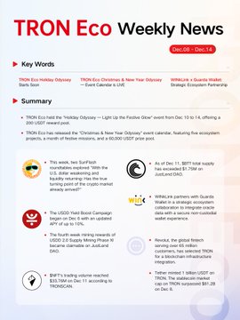 이번 주 #TRONEco 주간 하이라이트를 확인하세요. 트론(TRON) Eco의 최신 생태계 업데이트, 캠페인 및 수익 창출 기회를 살펴보세요. 윙크링크(WINkLink) 안정적인 오라클 인프라를 통해 생태계를 지속적으로 지원합니다. 이번 주 전체 요약을 확인해 보세요 👇
