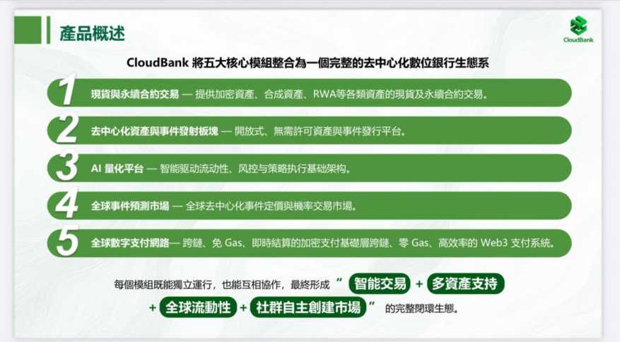 1. 이는 단일 기능 토큰이 아니라, 클라우드뱅크의 풀스택 DeFi 생태계의 핵심 가치입니다.