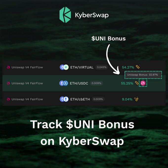 이제 KyberSwap에서 $UNI 보상을 직접 추적할 수 있습니다 💚🦄