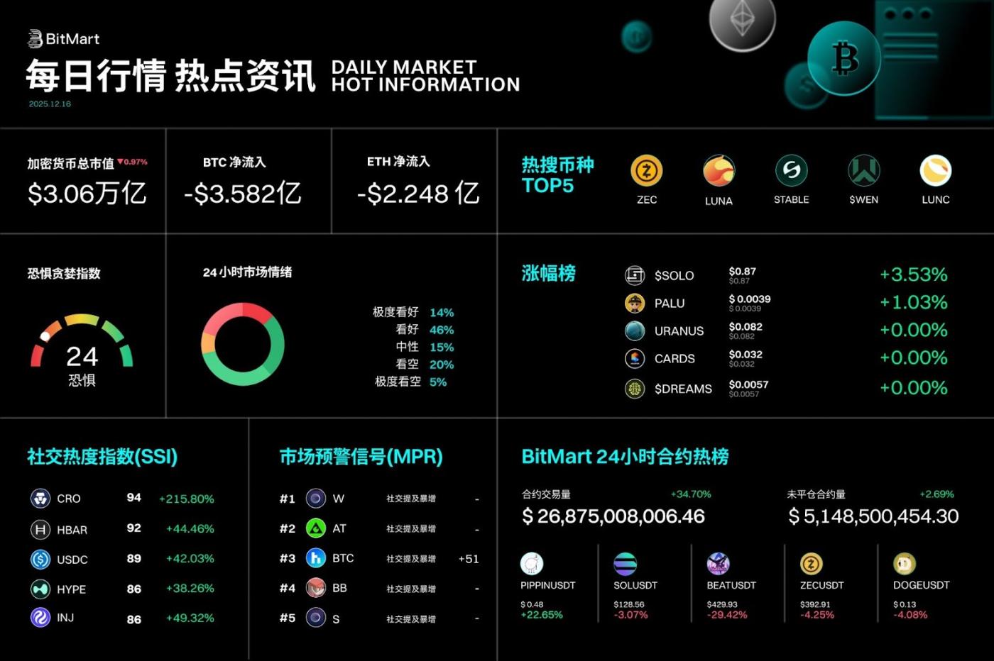 ME 뉴스에 따르면 12월 17일(UTC+8) 글로벌 거시 경제 환경은 금리 인하 사이클을 유지하고 있습니다. 매파적인 점도표가 우려를 불러일으켰지만, 실제 결과는 예상보다 다소 양호했으며, 시장은 내년에 1~2차례 추가 금리 인하를 반영했습니다. 연준은 추가 금리 인상을 사실상 배제했으며, 완화적인 통화 정책 기조를 유지하고 있습니다. 노동 시장은 계속해서 냉각되고 있으며, 고용 및 물가 지표가 더욱 약화될 경우 예상치 못한 금리 인하 가능성을 배제할 수 없습니다. 이번 주에는 비농업 고용지표, 소비자물가지수(CPI), 생산자물가지수(PPI), 그리고 유럽중앙은행(ECB)과 일본은행(BOJ)의 회의에 관심이 집중될 것입니다. 일본은행의 금리 인상은 이미 시장에 완전히 반영되었으며, 그 영향은 제한적일 것으로 예상됩니다. 연말 옵션 거래량이 많아 단기 변동성은 완화될 것으로 보이지만, 주요 지지/저항선이 돌파될 경우 리스크 증폭될 수 있으므로 주의해야 합니다. 자금은 인공지능(AI)과 같이 수요가 집중된 업종에서 경기순환 업종, 유틸리티, 헬스케어로 이동하기 시작했습니다.