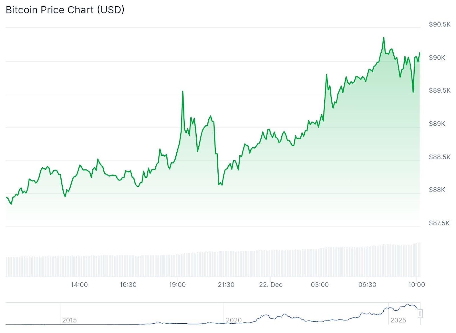 주요 디지털 자산은 최근 변동성 이후 크리스마스 연휴를 앞두고 시장이 안정세를 되찾으면서 12월 22일 월요일에 소폭 상승했습니다.