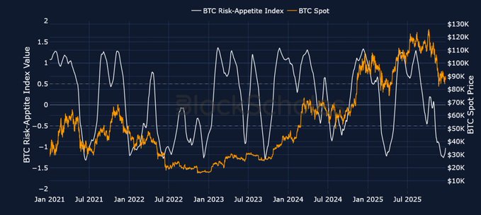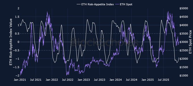 3/ 📊 그럼에도 불구하고, 역사적 최저치(극심한 공황 상태) 부근에서 오랫동안 머무른 후, 비트코인(BTC) 과 이더리움(ETH) 에 대한 위험 선호 지수는 바닥을 형성하고 있다는 조심스러운 징후를 계속해서 보여주고 있습니다.