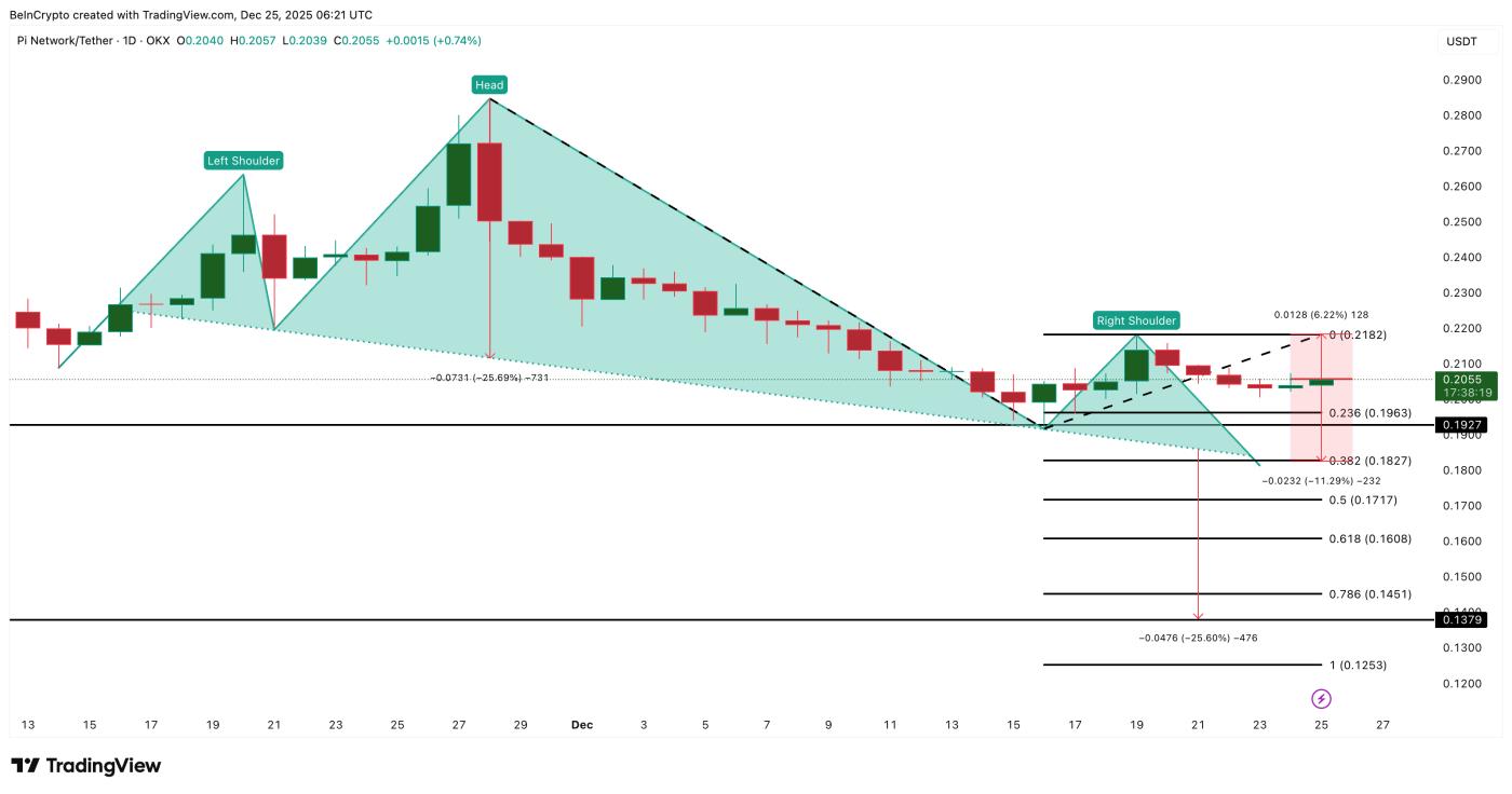 이러한 차이는 단순한 표면적인 현상이 아닙니다. MFI 지수가 상승세를 보인 시점은 파이 코인 가격이 헤드앤숄더 패턴의 넥라인 부근으로 움직이기 시작한 시점과 정확히 일치합니다. 해당 패턴 자체는 여전히 하락세를 가리키고 있지만, MFI의 반응 덕분에 즉각적인 하락을 막을 수 있었습니다.