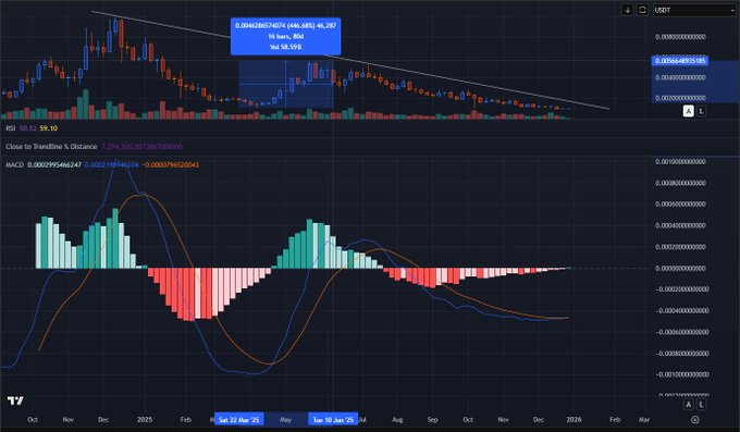$Dog 5일 MACD 크로스 신호가 방금 발생했습니다. 지난번에 이와 비슷한 상황이 발생했을 때 $Dog 저점 대비 450% 상승했습니다. 다시 신호가 발생할 경우 예상 목표 가격: 0.005 또는 500 mc 🔥🔥🔥 아마도 아무 일도 일어나지 않을 겁니다.