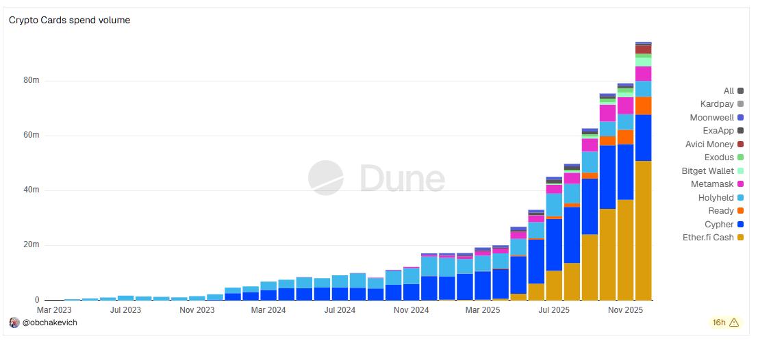 6. 네오뱅크 도입이 크게 증가했으며, 암호화폐 카드 사용액은 5억 달러에 달했습니다.