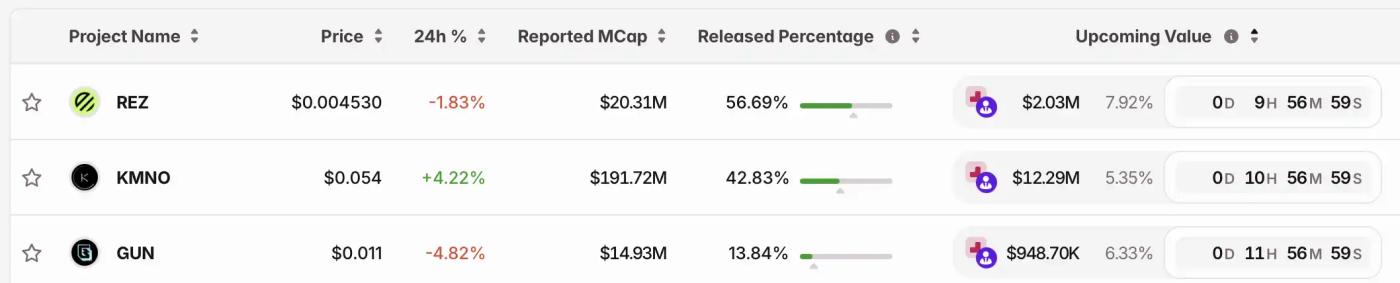 일일 전체 시장 유동성(펀딩 비율로 반영됨) 및 토큰 언락