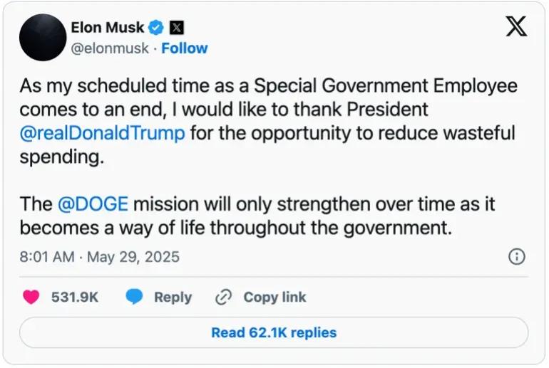 진정한 장애물은 곧 명확해졌다. 연방 지출은 계속 증가했고, 사회보장, 메디케어, 국채 이자 지급과 같은 필수 지출은 임원 해고의 영향을 전혀 받지 않았다. 5월이 되자 여러 가지 압력이 한데 모였다. 머스크와 트럼프의 관계는 악화되기 시작했고, 두 사람은 공개적으로 충돌했다. 이후 DOGE의 권한과 절차의 합법성에 의문을 제기하는 소송이 제기되었다. 테슬라 업무 또한 그의 복귀를 요구했다. 주가 변동, 생산 문제, 시장 경쟁 등 모든 것이 CEO의 관심을 필요로 했다. 무엇보다 2조 달러 절감 목표는 명백히 불가능한 과제였고, 실패할 운명인 프로젝트에 계속 남아 있는 것은 머스크의 개인적인 이미지에 도움이 되지 않을 것이었다. 130일의 임기가 끝난 후, 머스크는 민간 기업으로 복귀하겠다고 발표했다. 그는 임기 연장을 신청하지도 않았고, 추가 지원을 요청하지도 않았다. 대신, 깔끔하고 단호한 퇴임을 선택했다. 이 결정 자체가 가장 큰 인정이었다. 기업 방식을 통해 정부를 개혁하려는 시도는 그가 상상했던 것보다 훨씬 더 어려웠다는 것을.