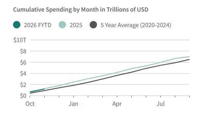 정부 재정 시스템과 기업 재정 시스템의 가장 근본적인 차이점은 연방 지출의 70% 이상이 의무적이라는 점입니다. 이러한 지출은 인구 통계, 경기 순환, 금리 변동의 영향을 받아 법적으로 자동적으로 증가하도록 규정되어 있으며, 행정 인력 감축의 영향을 전혀 받지 않습니다. 2025년 데이터는 이러한 경직성을 명확히 보여줍니다. 사회보장 및 메디케어를 포함한 복지 지출은 주로 고령화와 물가 상승률 조정으로 인해 약 1,680억 달러 증가했습니다. 국가 부채 이자 비용은 710억 달러 급증하여 채무 36조~38조 3천억 달러로 증가했으며, 이자 지급액은 국방 예산을 넘어 연방 정부 지출 중 가장 큰 비중을 차지하게 되었습니다.