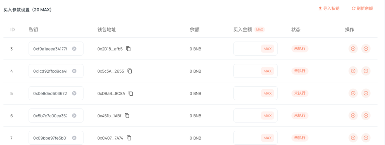 - "개인 키 가져오기"를 클릭하여 최대 20개의 지갑을 일괄적으로 추가할 수 있습니다.