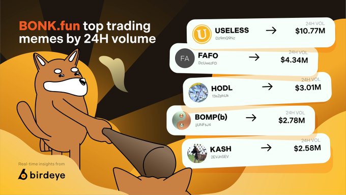24시간 거래량 기준 @bonkfun 밈코인 거래량 👇