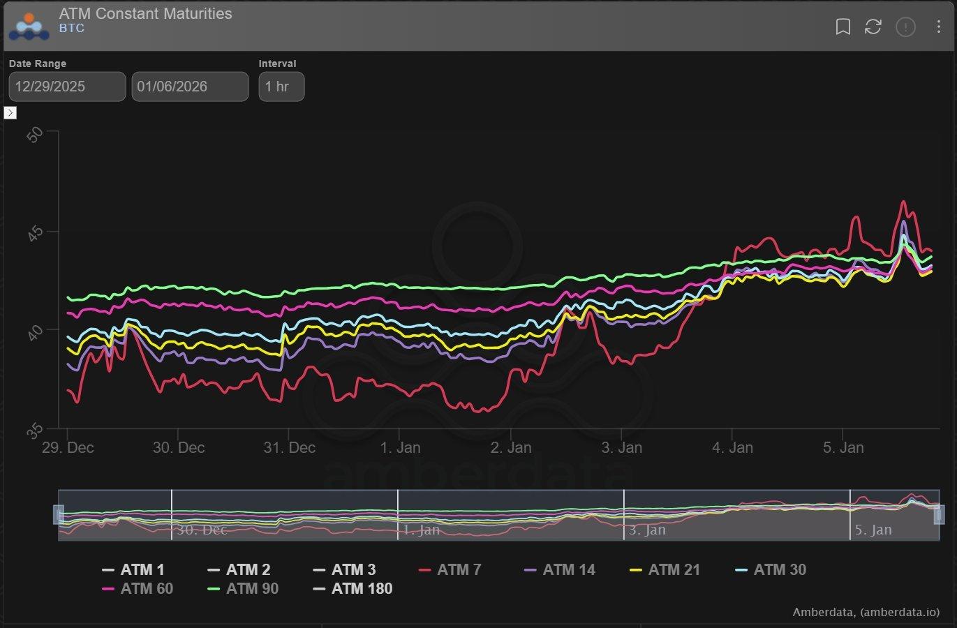 당연히 활발한 매수세에 힘입어 내재 변동성이 강세를 보였습니다. 심지어 만기일이 더 먼 장기 만기, 예를 들어 2026년 12월 만기 5만~20만 스트랭글과 같은 볼록형 매수 포지션에서도 변동성이 상승했습니다.