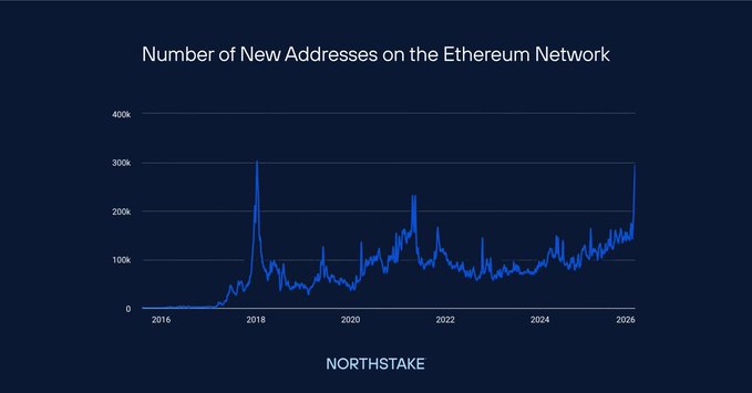 이더리움은 12월 31일에 270,160개의 신규 주소가 생성되는 속도를 기록하며, 주요 확장 국면에서 관찰되었던 수준에 근접하고 있습니다.
