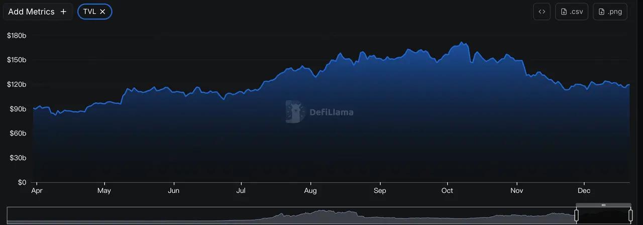 시장이 안정된 후 투자자들이 점차 복귀하면서 스테이블코인 공급량은 12월에 안정세를 보이며 30일 평균 약 1.72% 증가, 11월의 하락세를 마감했습니다. 온체인 TVL(총 예치 자산)도 점차 안정세를 보이며 소폭 반등했습니다. BTC와 ETH ETF의 순유출은 둔화되고 지속적인 소폭 유입을 기록하며 ETF 자금이 인출에서 재배분으로 전환하고 있음을 시사했습니다.