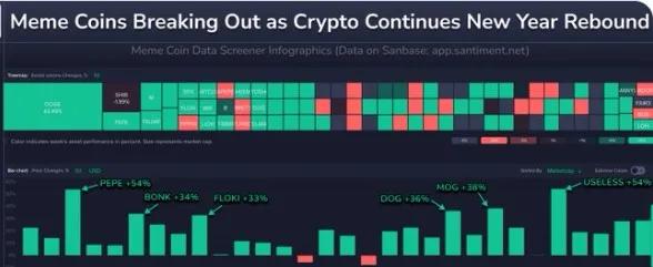 뜻밖에도 새해 시장 상승세에 불을 지핀 것은 비트코인이나 이더리움이 아니라 밈(meme) 코인이었습니다. 조용한 연휴 기간과 침체된 시장 활동 이후, 밈(meme) 코인들이 강력한 반격을 보이고 있습니다.