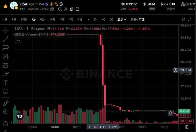 LISA币大跌76%<->LISA币在短短24小时内崩盘76%,成为又一个被迅速“收割”的Alpha代币。引发此次币价快速下跌的原因是三笔由Alpha用户进行的抛售交易,短时间内出售价值17万美元的LISA。