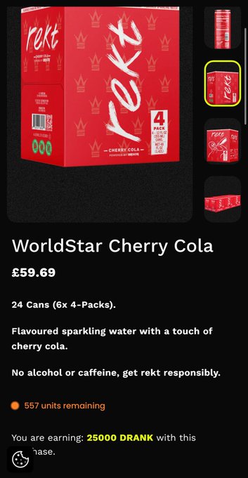 미국은 아직 깨어나지 않았고, @rektdrinks x @WORLDSTAR 제품은 약 550개 남았습니다! 늦기 전에 http:/rekt.com에서 구매하시고 $REKT 포인트를 적립하세요!