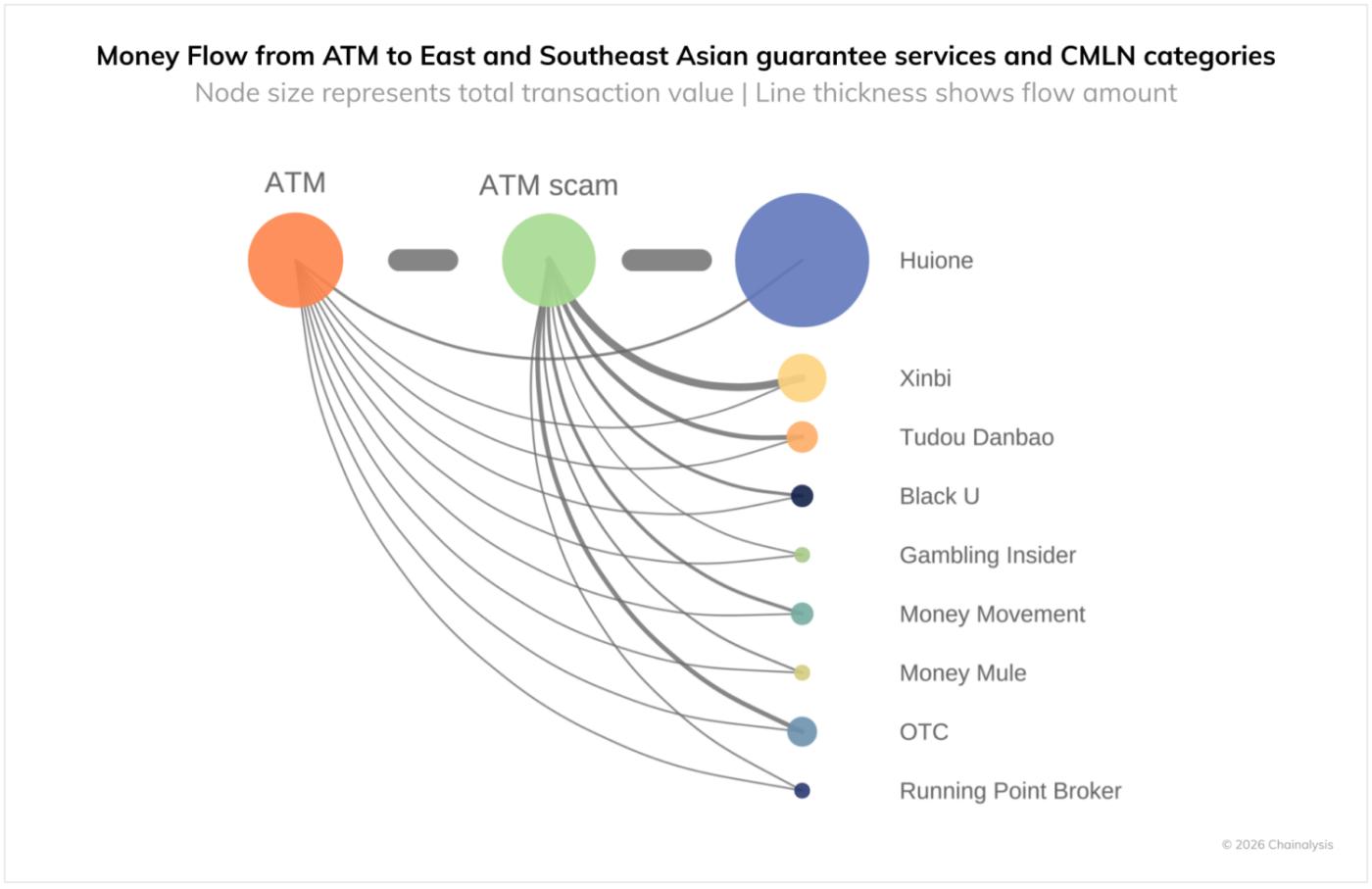 온체인 분석에 의하면 미국의 암호화 자산 ATM에서 송금된 자금의 대부분이 동남아시아를 거점으로 하는 CMLN과 담보 서비스의 지갑으로 흐르고 있으며, 이들이 글로벌 사기 인프라의 주요 중계점이 되고 있다. 모든 ATM 기점 자금이 CMLN으로 직접 흐르는 것은 아니지만, 노인을 겨냥한 사기꾼의 지불 경로로서 암호화 자산 ATM은 여전히 중요한 역할을 수행하고 있습니다. ATM에서 현금을 암호화 자산으로 전환시킨 노인 자금은 신속하게 CMLN을 통해 청소되고 글로벌 금융 시스템에 통합됩니다.