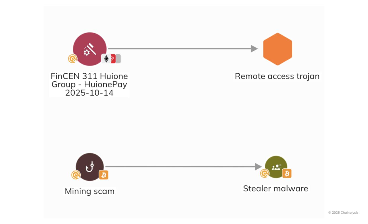 당사의 온체인 분석은 암호화 자산 사기가 동아시아 및 동남아시아에 본사를 둔 운영과 강하게 연결되어 있음을 계속 보여줍니다. 2025년 보고서에서 확인한 Huione Guarantee 플랫폼은 FinCEN의 311 지정에 따라 미국 금융 시스템에서 제거되었지만 유사한 작업이 지역에서 확대되고 있습니다.