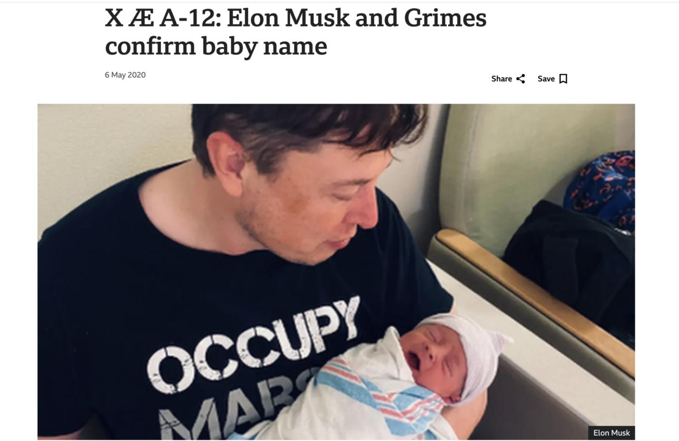 그는 가장 아끼는 아들에게 X Æ A-12라는 이름을 지어주었지만, 일상생활에서는 그냥 "꼬마 X"라고 불렀다.