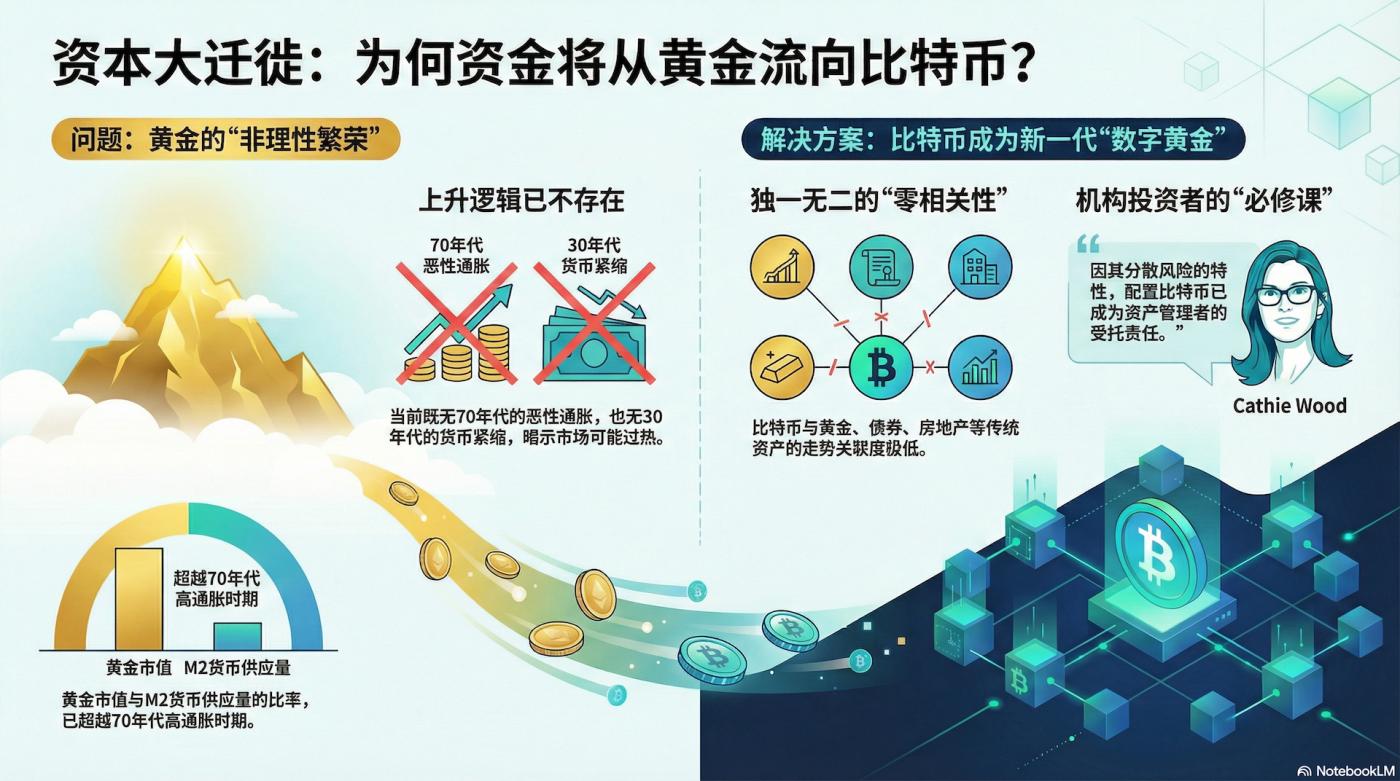 자금 순환: 금값이 정점을 찍은 후, 초과 자금은 비트코인으로 유입될 것입니다. 인공지능 혁신과 디플레이션 환경이 맞물리면서 2026년에 비트코인 가격이 급등할 것으로 예상됩니다.