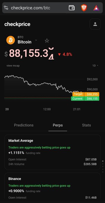 Bitcoin is back below $87,000, now down -9% in 48 hours.