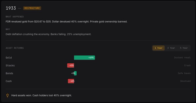 저는 블룸버그 터미널에 1933년 이후 모든 채무 위기에서 실제로 효과가 있었던 해결책을 보여주는 코드를 만들었습니다 🧵